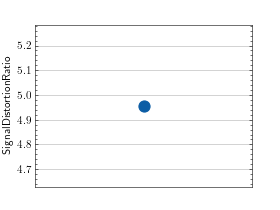 >>> # Example plotting a single value >>> import torch >>> from torchmetrics.audio import SignalDistortionRatio >>> metric = SignalDistortionRatio() >>> metric.update(torch.rand(8000), torch.rand(8000)) >>> fig_, ax_ = metric.plot()