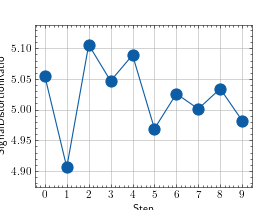 >>> # Example plotting multiple values >>> import torch >>> from torchmetrics.audio import SignalDistortionRatio >>> metric = SignalDistortionRatio() >>> values = [ ] >>> for _ in range(10): ... values.append(metric(torch.rand(8000), torch.rand(8000))) >>> fig_, ax_ = metric.plot(values)