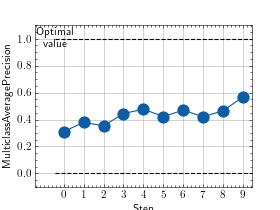 >>> # Example plotting multiple values >>> import torch >>> from torchmetrics.classification import MulticlassAveragePrecision >>> metric = MulticlassAveragePrecision(num_classes=3) >>> values = [ ] >>> for _ in range(10): ... values.append(metric(torch.randn(20, 3), torch.randint(3, (20,)))) >>> fig_, ax_ = metric.plot(values)