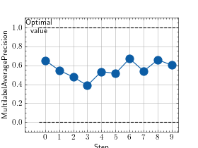 >>> # Example plotting multiple values >>> import torch >>> from torchmetrics.classification import MultilabelAveragePrecision >>> metric = MultilabelAveragePrecision(num_labels=3) >>> values = [ ] >>> for _ in range(10): ... values.append(metric(torch.rand(20,3), torch.randint(2, (20,3)))) >>> fig_, ax_ = metric.plot(values)