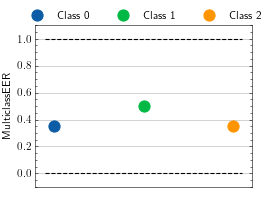 >>> # Example plotting a single >>> import torch >>> from torchmetrics.classification import MulticlassEER >>> metric = MulticlassEER(num_classes=3) >>> metric.update(torch.randn(20, 3), torch.randint(3,(20,))) >>> fig_, ax_ = metric.plot()