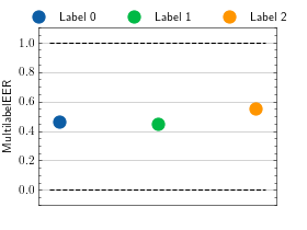 >>> # Example plotting a single >>> import torch >>> from torchmetrics.classification import MultilabelEER >>> metric = MultilabelEER(num_labels=3) >>> metric.update(torch.rand(20,3), torch.randint(2, (20,3))) >>> fig_, ax_ = metric.plot()