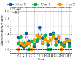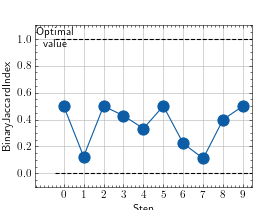 >>> # Example plotting multiple values >>> from torch import rand, randint >>> from torchmetrics.classification import BinaryJaccardIndex >>> metric = BinaryJaccardIndex() >>> values = [ ] >>> for _ in range(10): ... values.append(metric(rand(10), randint(2,(10,)))) >>> fig_, ax_ = metric.plot(values)