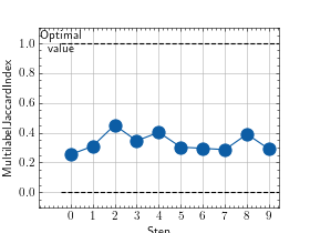 >>> # Example plotting multiple values >>> from torch import rand, randint >>> from torchmetrics.classification import MultilabelJaccardIndex >>> metric = MultilabelJaccardIndex(num_labels=3) >>> values = [ ] >>> for _ in range(10): ... values.append(metric(randint(2, (20, 3)), randint(2, (20, 3)))) >>> fig_, ax_ = metric.plot(values)