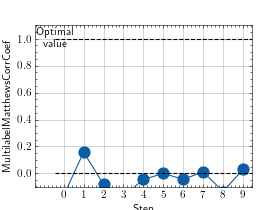 >>> from torch import rand, randint >>> # Example plotting multiple values >>> from torchmetrics.classification import MultilabelMatthewsCorrCoef >>> metric = MultilabelMatthewsCorrCoef(num_labels=3) >>> values = [ ] >>> for _ in range(10): ... values.append(metric(randint(2, (20, 3)), randint(2, (20, 3)))) >>> fig_, ax_ = metric.plot(values)